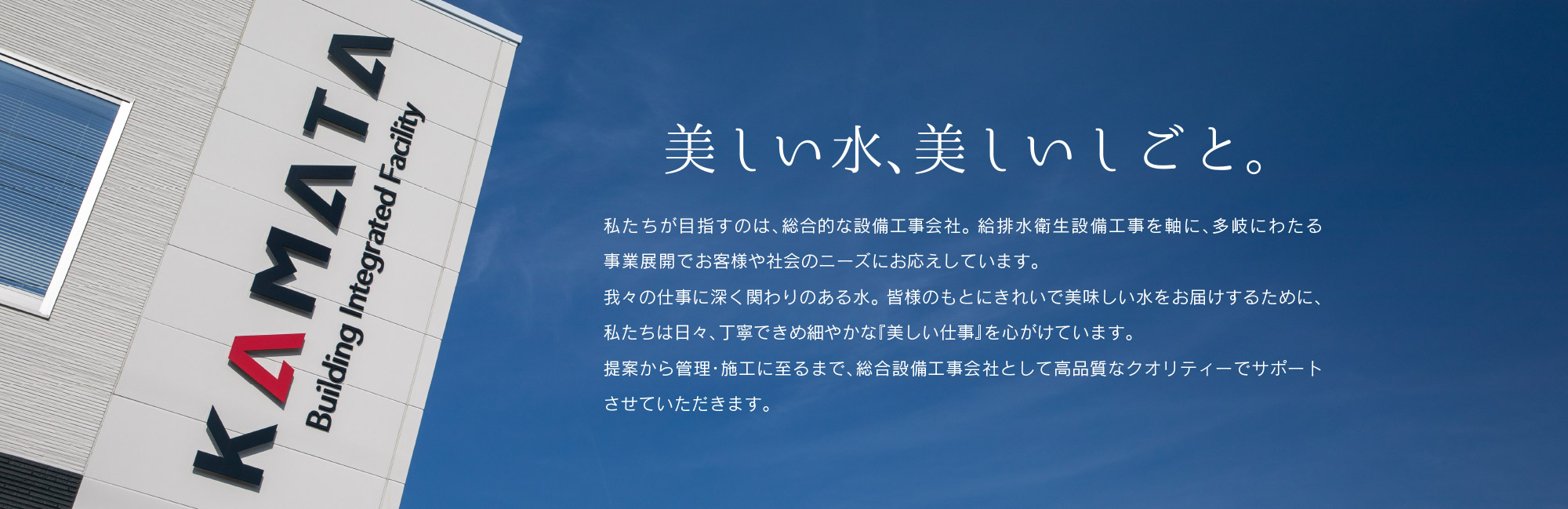 総合設備業として、給排水衛生設備・空気調和設備工事・水道土木工事・建設工事・電気設備工事など、多種多様な工事を行っています。